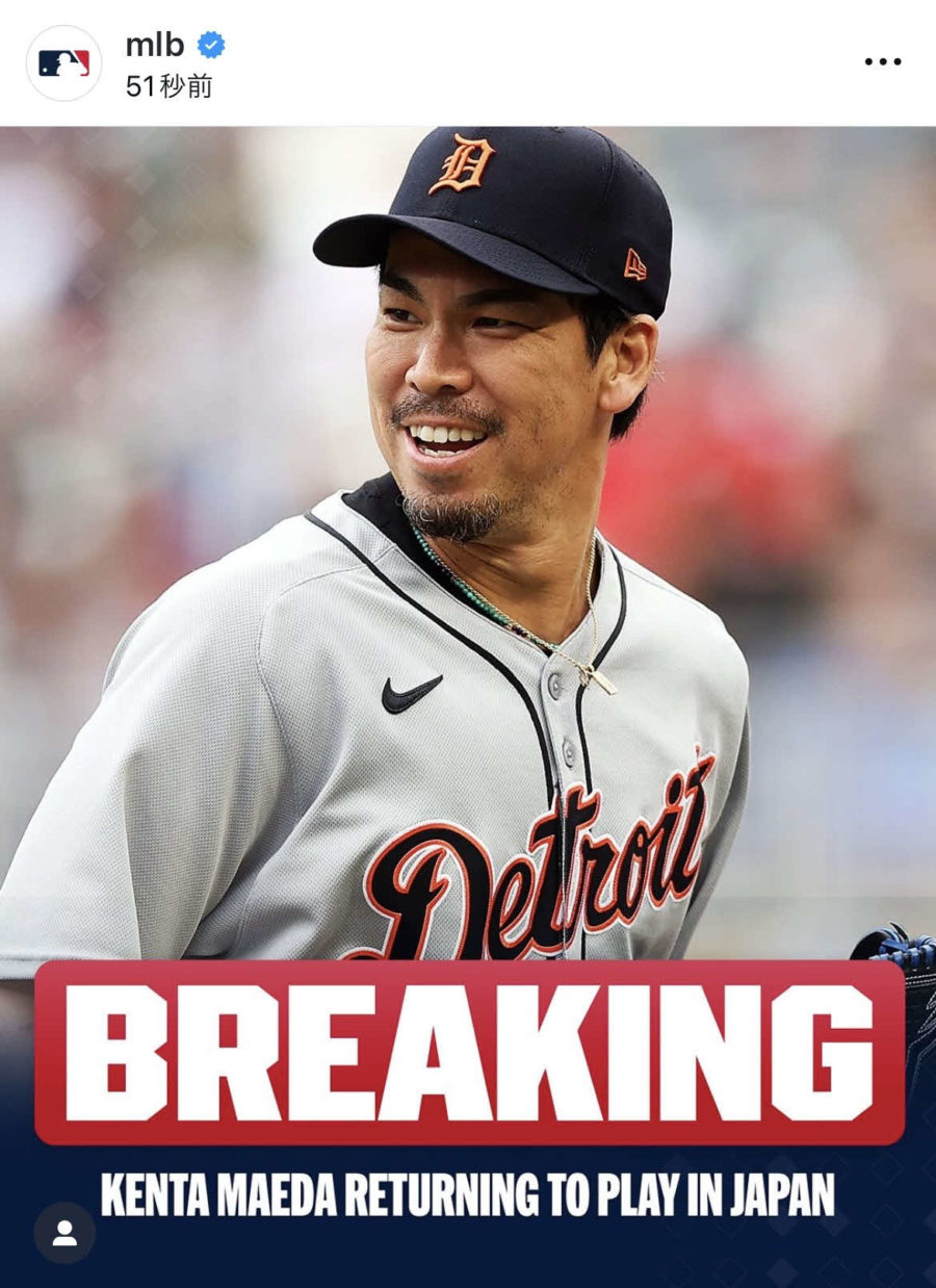 情報源: 前田健太が英語で日本復帰宣言、巨人が獲得調査「来季から日本で新たな章を始めます」 – MLB写真ニュース : 日刊スポーツ